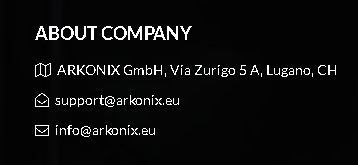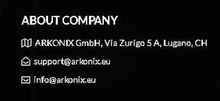 Quand je me suis rendu la première fois sur le site d' Arkonix, j'ai farfouillé et trouver des incohérence ou des erreurs qui ne devrais pas ce produire, quand on ouvre un business de la sorte. Une erreur tel que l'adresse des "bureau" étais vide. Pourquoi cela me choque? Car l'administrateur est enregistrer sur le site internet depuis 2016! Donc apparemment la période de test n'a pas été assez longue.Depuis, que je leur ai notifier ce point, ils ont fais l'effort de rectifier l'adresse. Je serais curieux de savoir si quelqu'un habite proche ou à Lugano même de faire une petite visite à la nouvelle adresse " Via Zurigo 5A, Lugano, Switzerland "